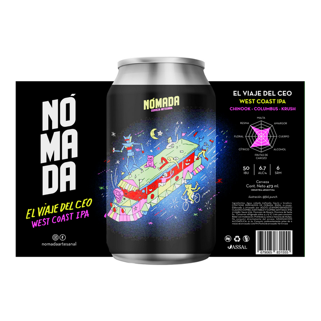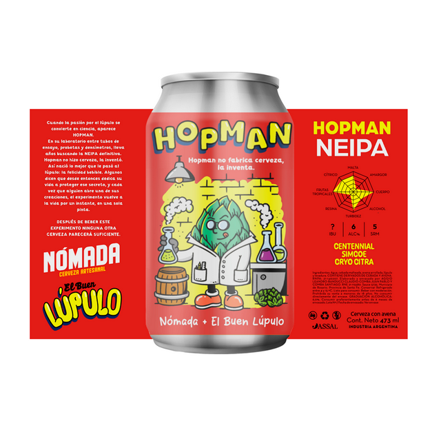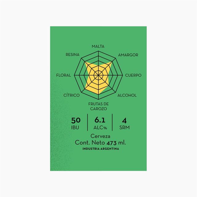 22 g/L de lúpulos que explotan en aroma y sabor. La estrella de esta birra es el Cryo-POP, un blend de lúpulos que se destaca por sus notas a frutas tropicales y coco.