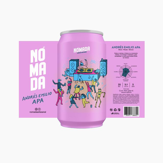 Notas a resinas y frutas en un escenario maltoso, de amargor moderado y gran tomabilidad. La birra que Andrés Emilio se merece.